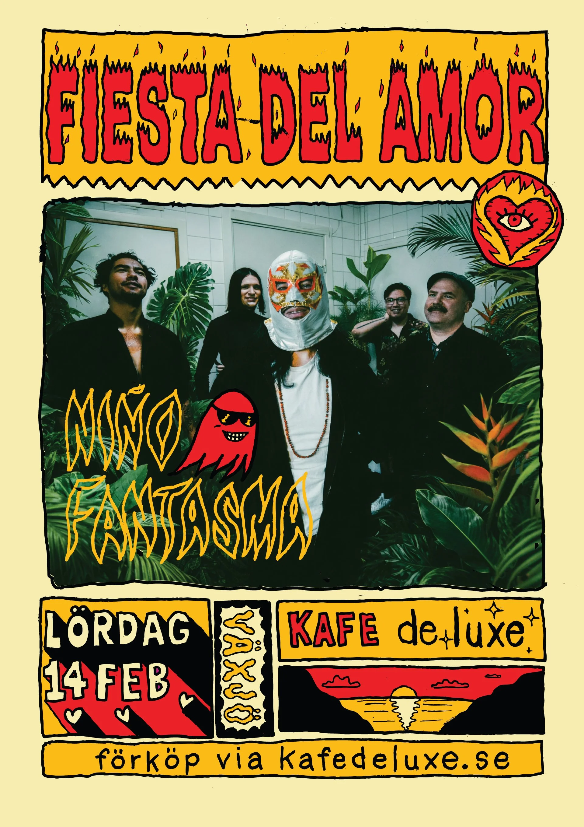 Äntligen dags igen! Den 14 februari bjuder Kafé de luxe in till Fiesta del Amor, en kväll med Niño Fantasma och Raice där vi firar kärleken, musiken och dansgolvet tillsammans.